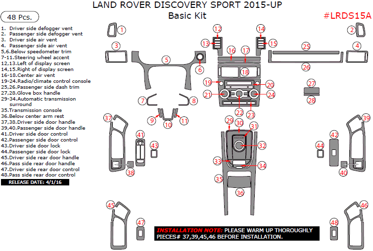 Land Rover Discovery Sport 2015, 2016, 2017, Basic Interior Kit, 48 Pcs.