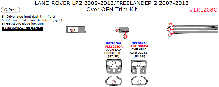 Land Rover LR2 2008, 2009, 2010, 2011, 2012/Freelander 2 2007-2012, Over OEM Interior Trim Kit, 6 Pcs.
