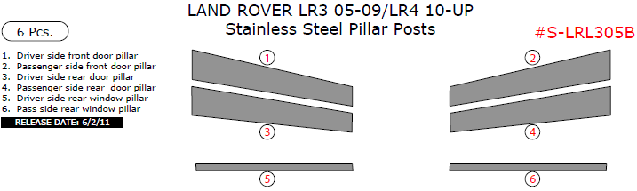 We offer a wide variety of colors and materials of Land Rover LR3 2005, 2006, 2007, 2008, 2009/LR4 2010-up, Stainless Steel Pillar Posts, 6 Pcs. Choose your favourite option and place an order.