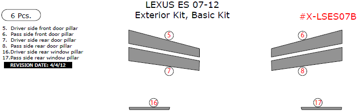 Lexus ES 2007, 2008, 2009, 2010, 2011, 2012, Basic Exterior Kit, 6 Pcs.