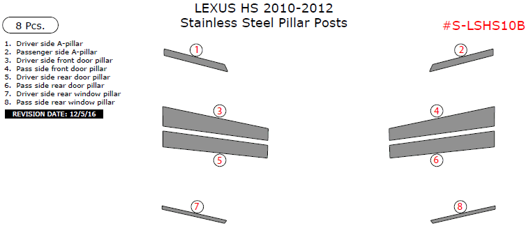 Lexus HS 2010, 2011, 2012, Stainless Steel Pillar Posts, 8 Pcs.