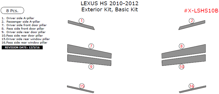 Lexus HS 2010, 2011, 2012, Basic Exterior Kit, 8 Pcs.