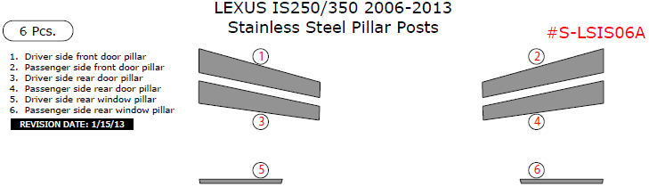 Lexus IS 2006, 2007, 2008, 2009, 2010, 2011, 2012, 2013, Stainless Steel Pillar Posts, 6 Pcs.