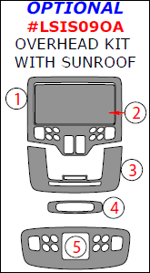 Lexus IS 2009, 2010, 2011, 2012, 2013, Optional Overhead Interior Kit With Sunroof, 5 Pcs.