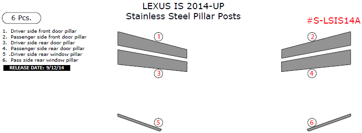 Lexus IS 2014, 2015, 2016, 2017, Stainless Steel Pillar Posts, 6 Pcs.
