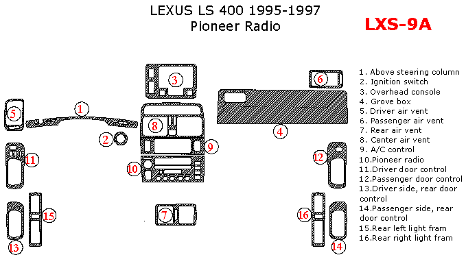 We offer a wide variety of colors and materials of Lexus LS 1995, 1996, 1997, Interior Dash Kit, Pioneer Radio, 17 Pcs., Match OEM. Choose your favourite option and place an order.