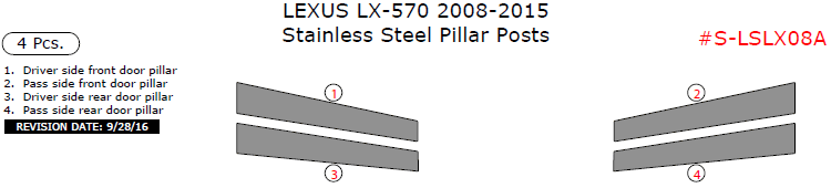 Lexus LX570 2008, 2009, 2010, 2011, 2012, 2013, 2014, 2015, Stainless Steel Pillar Posts, 4 Pcs.