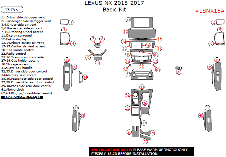 Lexus NX 2015, 2016, 2017, Basic Interior Kit, 43 Pcs.