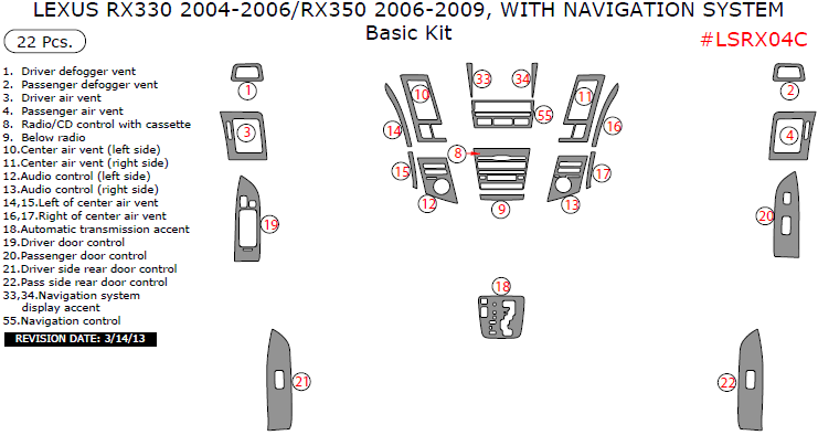 Lexus RX 2004, 2005, 2006, 2007, 2008, 2009, Basic Interior Kit, With Navigation System, 22 Pcs., Match OEM
