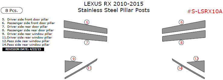 Lexus RX 2010, 2011, 2012, 2013, 2014, 2015, Stainless Steel Pillar Posts, 8 Pcs.