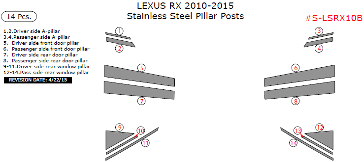 Lexus RX 2010, 2011, 2012, 2013, 2014, 2015, Stainless Steel Pillar Posts, 14 Pcs.