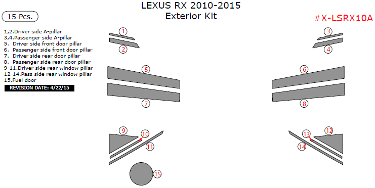 Lexus RX 2010, 2011, 2012, 2013, 2014, 2015, Exterior Kit, 15 Pcs.