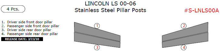 We offer a wide variety of colors and materials of Lincoln LS 2000, 2001, 2002, 2003, 2004, 2005, 2006, Stainless Steel Pillar Posts, 4 Pcs. Choose your favourite option and place an order.