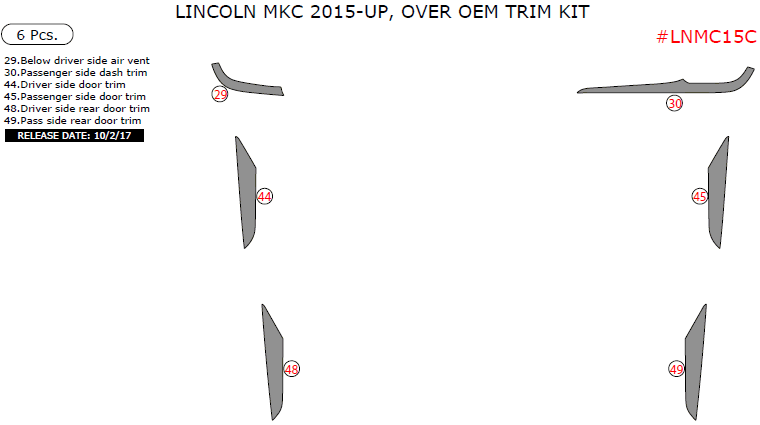 Lincoln MKC 2015, 2016, 2017, Over OEM Interior Trim Kit, 6 Pcs.