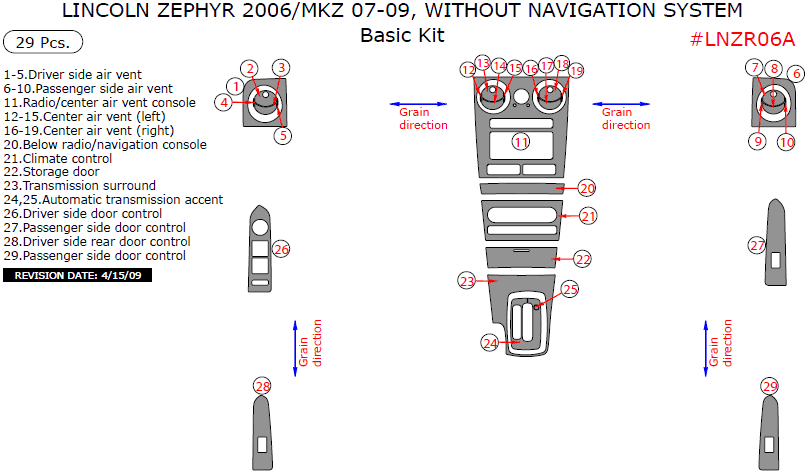 Lincoln MKZ (2007, 2008, 2009) / Zephyr (2006), Without Navigation System, Basic Interior Kit, 29 Pcs.