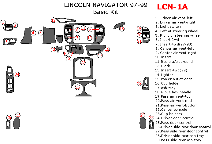 Lincoln Navigator 1997, 1998, 1999, Basic Interior Kit, 29 Pcs., Match OEM