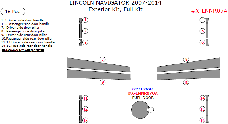 Lincoln Navigator 2007, 2008, 2009, 2010, 2011, 2012, 2013, 2014, Exterior Kit, Full Interior Kit, 16 Pcs.
