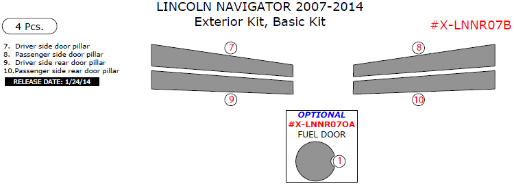 We offer a wide variety of colors and materials of Lincoln Navigator 2007, 2008, 2009, 2010, 2011, 2012, 2013, 2014, Basic Exterior Kit, 4 Pcs. Choose your favourite option and place an order.