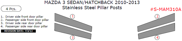 Mazda 3 Sedan/Hatchback 2010, 2011, 2012, 2013, Stainless Steel Pillar Posts, 4 Pcs.