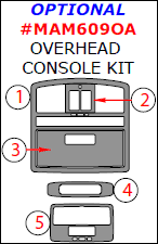 Mazda 6 2009, 2010, 2011, 2012, 2013, Optional Overhead Console Interior Kit, 5 Pcs.