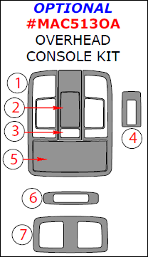 Mazda CX-5 2013, 2014, 2015, 2016.5, Optional Overhead Console Interior Kit, 7 Pcs.