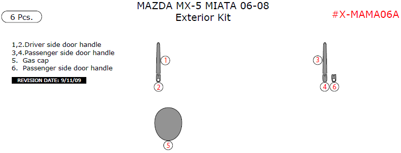 Mazda Miata 2006, 2007, 2008, Exterior Kit, 6 Pcs.