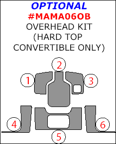 Mazda Miata 2006, 2007, 2008, 2009, 2010, 2011, 2012, 2013, 2014, 2015, Optional Overhead Interior Kit (Hard Top Convertible Only), 6 Pcs.