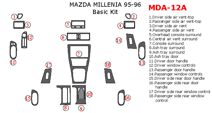 Mazda Millenia 1995-1996, Basic Interior Kit, 18 Pcs.