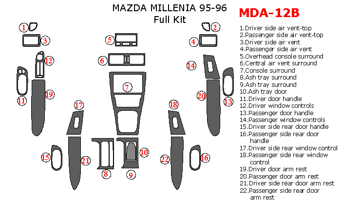 Mazda Millenia 1995-1996, Full Interior Kit, 22 Pcs.