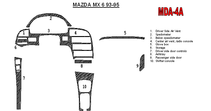 Mazda MX-6 1993-1995, Full Interior Kit, 10 Pcs.
