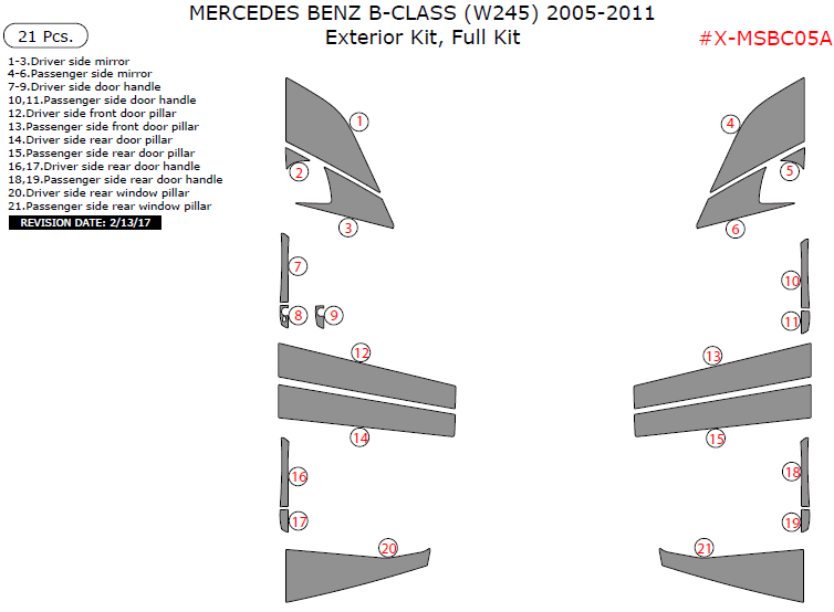 Mercedes Benz B-Class 2005, 2006, 2007, 2008, 2009, 2010, 2011, Exterior Kit, Full Interior Kit, 21 Pcs.