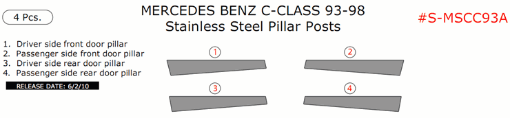 Mercedes C-Class 1993, 1994, 1995, 1996, 1997, 1998, Stainless Steel Pillar Posts, 4 Pcs.