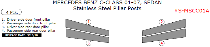 We offer a wide variety of colors and materials of Mercedes C-Class Sedan 2001, 2002, 2003, 2004, 2005, 2006, 2007, Stainless Steel Pillar Posts, 4 Pcs. Choose your favourite option and place an order.
