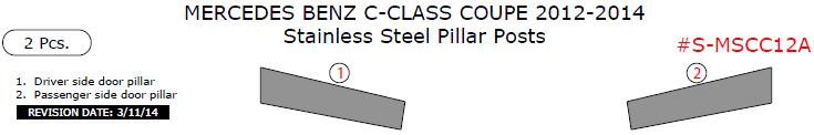 Mercedes Benz C-Class Coupe 2012, 2013, 2014, Stainless Steel Pillar Posts, 2 Pcs.