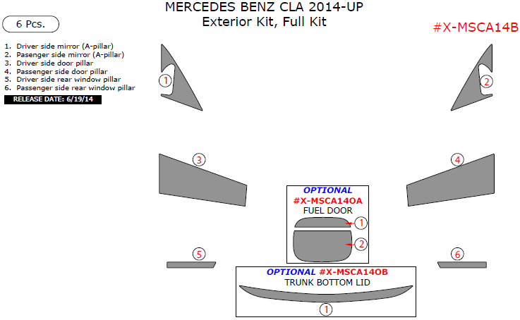 Mercedes CLA 2014, 2015, 2016, 2017, 2018, 2019, Exterior Kit, Full Interior Kit, 6 Pcs.