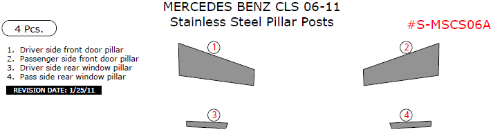 We offer a wide variety of colors and materials of Mercedes Benz CLS 2006, 2007, 2008, 2009, 2010, 2011, Stainless Steel Pillar Posts, 4 Pcs. Choose your favourite option and place an order.