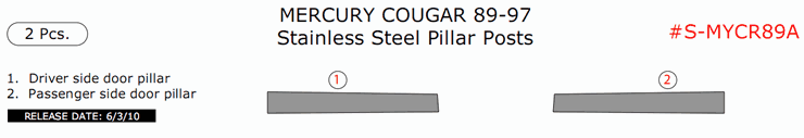Mercury Cougar 1989, 1990, 1991, 1992, 1993, 1994, 1995, 1996, 1997, Stainless Steel Pillar Posts, 2 Pcs.
