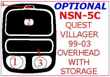 Mercury Villager/Nissan Quest 1999, 2000, 2001, 2002, 2003, Interior Dash Kit, Overhead Console With Storage, 4 Pcs.
