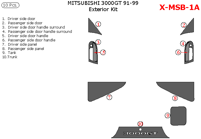 Mitsubishi 3000GT 1991, 1992, 1993, 1994, 1995, 1996, 1997, 1998, 1999, Exterior Kit, 10 Pcs.