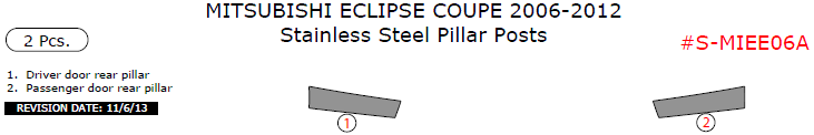 Mitsubishi Eclipse Coupe 2006, 2007, 2008, 2009, 2010, 2011, 2012, Stainless Steel Pillar Posts, 2 Pcs.