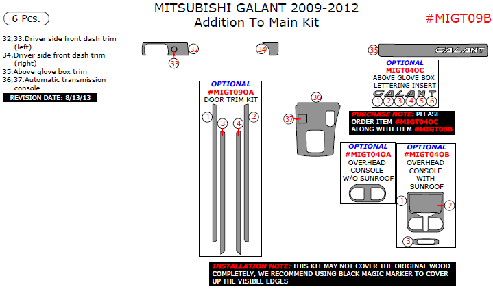 Mitsubishi Galant 2009, 2010, 2011, 2012, Addition To Main Interior Kit, 6 Pcs.