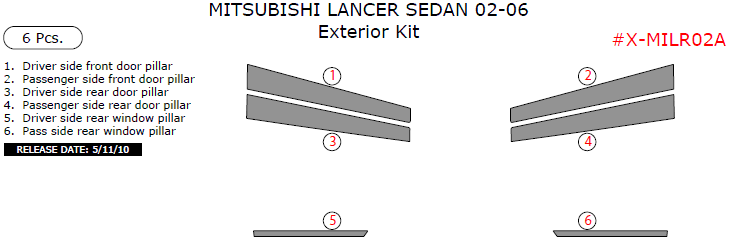 Mitsubishi Lancer 2002, 2003, 2004, 2005, 2006, Exterior Kit (Sedan Only), 6 Pcs.