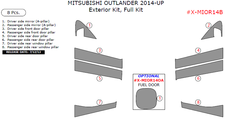 Mitsubishi Outlander 2014, 2015, 2016, 2017, Exterior Kit, Full Interior Kit, 8 Pcs.
