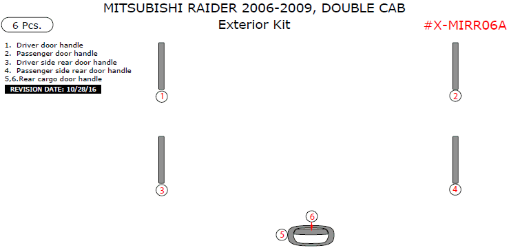 Mitsubishi Raider 2006, 2007, 2008, 2009, Double Cab, Exterior Kit, 6 Pcs.