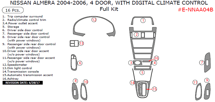 Nissan Almera 2004, 2005, 2006, 4 Door, With Digital Climate Control, Full Interior Kit, 16 Pcs.