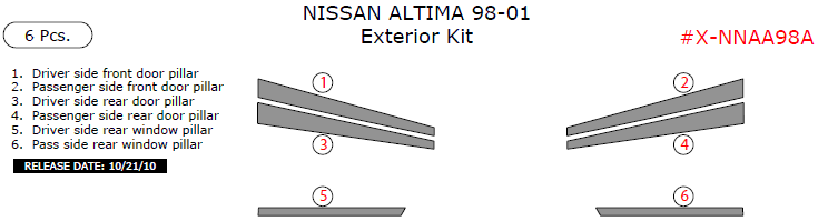 Nissan Altima 1998, 1999, 2000, 2001, Exterior Kit, 6 Pcs.