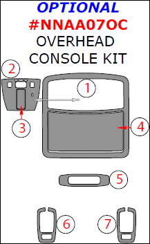 Nissan Altima 2007, 2008, 2009, 2010, 2011, 2012, Sedan, Optional Overhead Console Interior Kit, 7 Pcs.