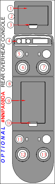 Nissan Armada 2008, 2009, 2010, 2011, 2012, 2013, 2014, Optional Rear Overhead Console Interior Kit, 13 Pcs.