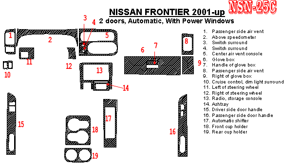 Nissan Frontier 2001, Interior Dash Kit, Automatic, 2 Door, With Power Windows, 19 Pcs.