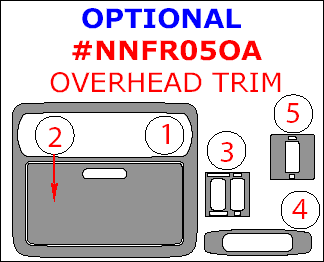 Nissan Frontier 2005, 2006, 2007, 2008, Optional Overhead Console Interior Kit, 5 Pcs.